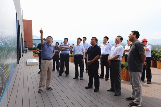 7月2日下午,继北京市委书记蔡奇赴科学城检查调研后,怀柔区政协主席武占刚,副主席周东金、王玉山、史宗祥,怀柔区委副书记、科学城管委会副主任姜泽廷一行人来到我集团公司承建的“材料基因组研究平台”对科学城项目建设进行工作视察。