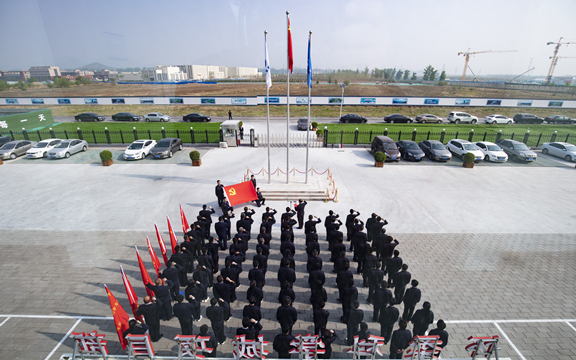 授旗仪式上,集团公司党委书记、董事长陈先瑞郑重地将鲜红的临时党支部旗帜递交到七个临时党支部书记手中,标志着项目临时党支部正式成立。全体党员在陈劲总工程师的带领下面对党旗,举起右拳,重温入党誓词。支部书记代表在发言中表示,项目临时党支部将在集团党委的带领下,围绕工程不同施工阶段,开展专题党建工作,切实把党员群众凝聚起来,奔着共同的目标不断开展创新活动,打造实时、先进、科学的模范临时党支部,为集团贡献一份力量,实现党建工作和项目生产经营互促互赢新局面。
