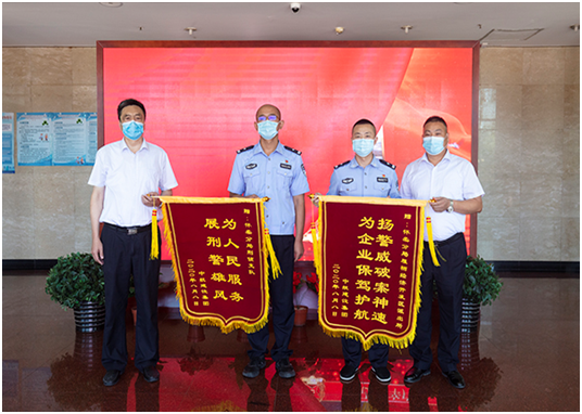 8月10日上午,集团公司培训中心主任孔德明、工会主席郑春梅、租赁公司副总经理刘秀举、综合管理部助理孟醒代表酷游网页版登录入口来到北京市公安局怀柔分局,为怀柔分局雁栖经济开发区派出所和怀柔分局刑侦支队赠送锦旗,锦旗上分别绣有“扬警威破案神速,为企业保驾护航”、“为人民服务,展刑警雄风”的大字,对此次成功破获我集团租赁公司失窃案的全体民警、刑侦警官表示由衷的感谢!