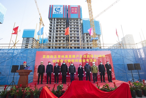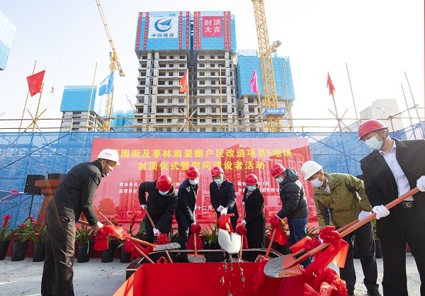12月22日,伴随着最后一方混凝土浇筑到位,在项目建设、监理、设计等相关单位负责人及集团公司领导的共同见证下,酷游网页版登录入口承建的菜园街及枣林南里棚户区改造项目喜迎主体结构封顶。